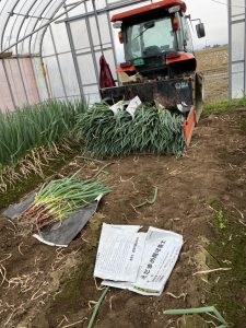12月から赤ネギの収穫が始まりました。 今年の4月に種蒔きをしてから8ヶ月、ようやく収穫です。 赤ネギは長ネギなどと比べると柔らかいので収穫や皮むきはすべて手作業で行います。これがホント大変なんです。 でも見た目は美し